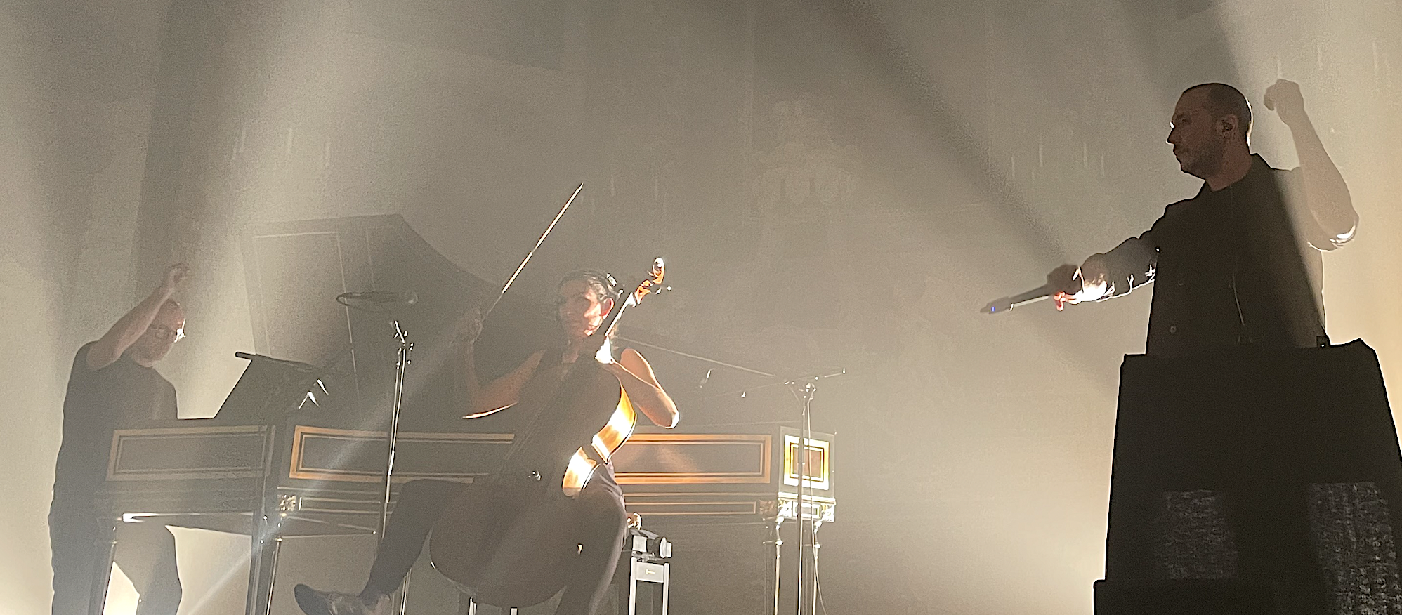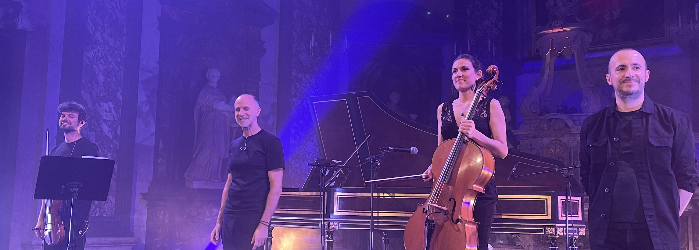 Imaginez le chef d’orchestre Franck-Emmanuel Compte jouant du clavecin debout, accompagné par Aude Walker-Viry, une violoncelliste André Costa violoniste utilisant un loopers (ou pédale d’effets) mais aussi un beatboxer, Ticko, chargé de la rythmique.