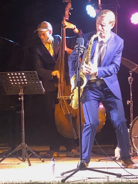 Jan Harbek en août 2023 en quartet à Parfum de Jazz à Mollans : dérogeant à son principe de n’inviter que des formations emmenées par une musicienne, le festival avait invité le saxophoniste et son quartet. Un enchantement. Avec Henrik Gunde au piano et maître du jeu, le contrebassiste Eske Nørrelykke et le batteur Anders Holm, (Photo : Jean Labrûlerie)