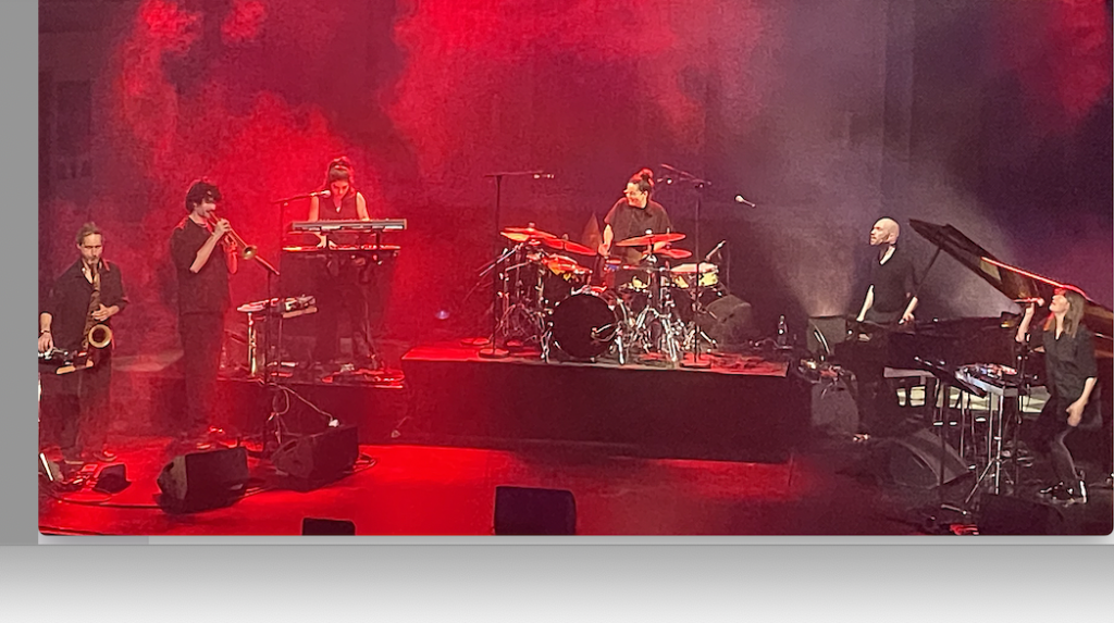 Si le concert du sextet d’Anne Pacéo peut être estampillé Jazz, du fait de la place donnée à l’improvisation octroyée à chacun des musiciens portés par la vague musicale qui ne s’en sont pas privés-avec de belles envolées lyriques, notamment du pianiste Gauthier Toux-,la texture musicale de l’ensemble est assurément hybride, faisant notamment appel à la pop musique et aux musiques électroniques.