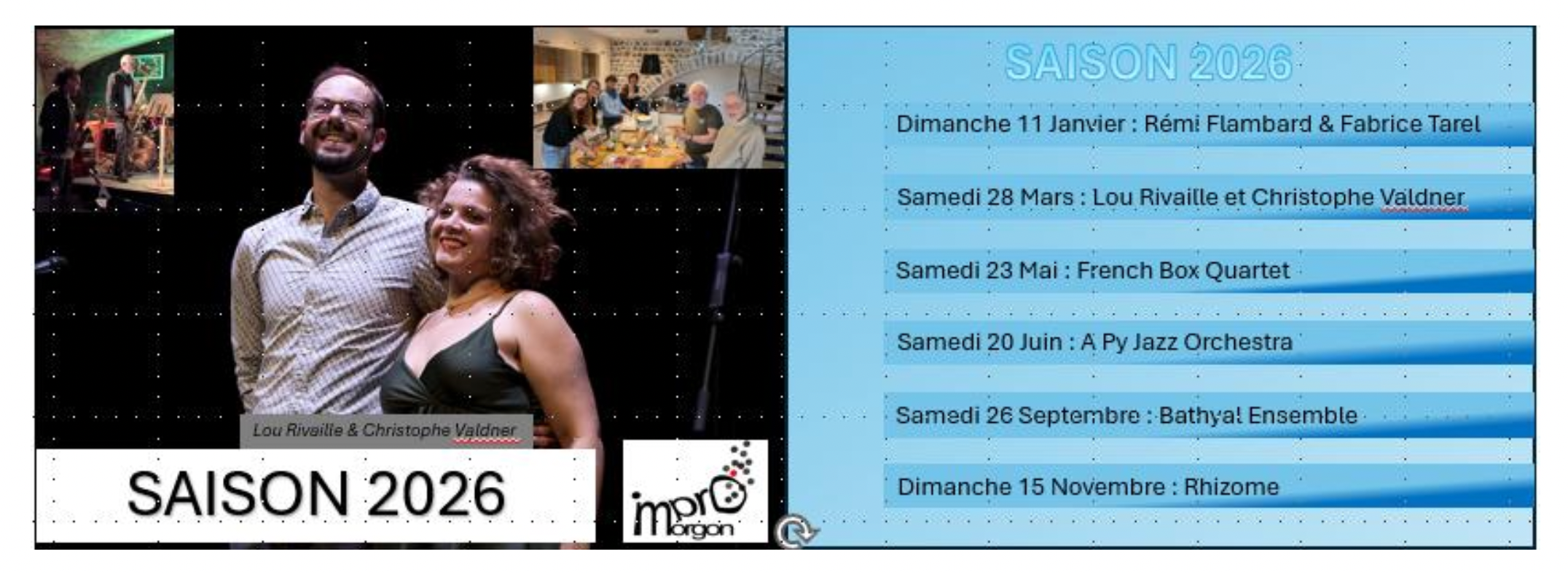 Non loin de Lyon, une autre salle ou plutôt un nouveau caveau est aussi en train de se développer et va faire croître sa programmation en 2026 (voir ci-dessous), cette fois dans le Beaujolais, son nom : Impro Morgon.